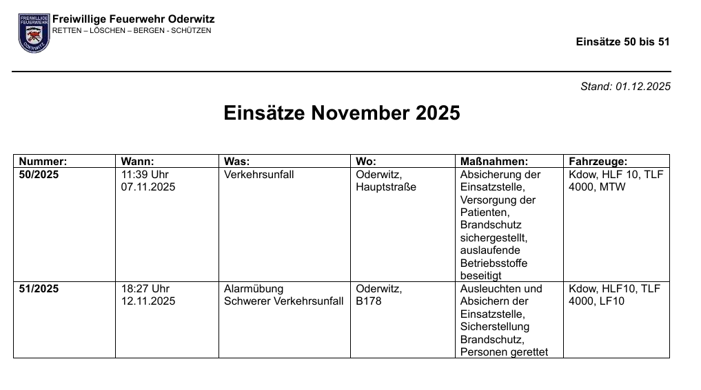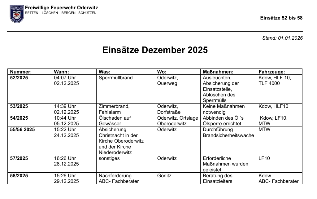Am Freitag dem 05.12.2025 trafen sich die Kameraden der Feuerwehr Oderwitz um 18:30 Uhr zum letzten Dienst des Jahres. weiterlesen…