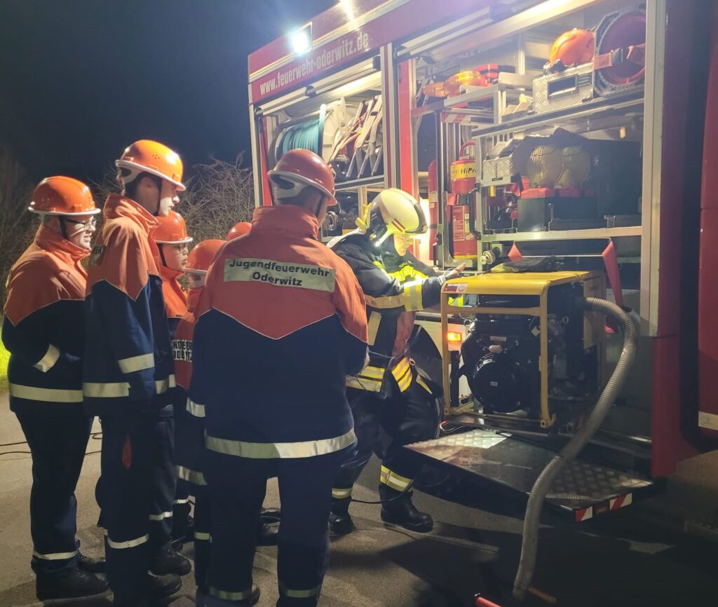 Beim Dienst der Jugendfeuerwehr am 14.11.2025 kamen die Jugendlichen wieder um 17.30 Uhr zusammen um das Thema Ausleuchten von Einsatzstellen zu üben. Dabei lernten sie beispielsweise das Starten des Stromerzeugers und den Aufbau eines mobilen Lichtmastes. Die Jugendlichen mussten besonders darauf achten, dass der Lichtmast abgespannt wird um einen sicheren Stand zu gewährleisten. Auch wurde den Jugendlichen erklärt, was bei Elektrizität zu beachten ist um sich nicht zu verletzen und die Geräte nicht zu beschädigen.